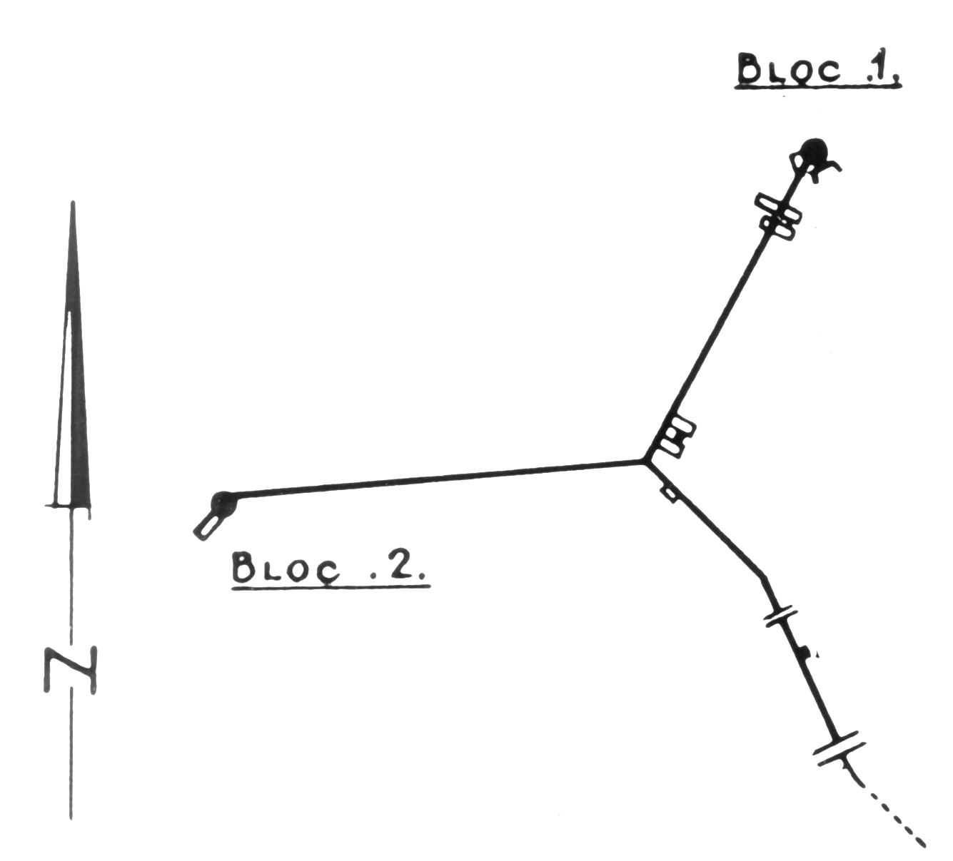 Le plan d'implantation général de l'ouvrage est issu et discuté au printemps 1932. Outre les deux blocs, il prévoit en deuxième cycle une entrée séparée. A cette occasion, la CORF préconise (lettre 390/ORF - Avril 1932) de prévoir le logement de l'essentiel de l'équipage dans la galerie menant à l'issue future.