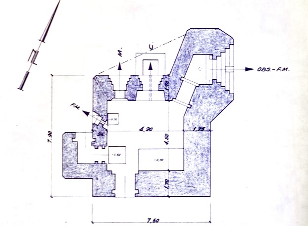 Le blockhaus est doté d'un créneau d'observation frontal rectiligne, ce qui le rattache au plan type STG-FCR simple.