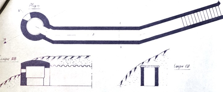Blockhaus pour arme d'infanterie type 'pillule brianconnaise'. Celle-ci avait son entrée déportée en arrière et reliée au bloc via une galerie maçonnée
