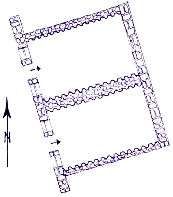 Le PC était constitué de deux alvéoles en tôle métro posées sur des murettes de 50 cm de hauteur. La façade est en maçonnerie de 40 cm d’épaisseur et le tout est recouvert de pierraille et de terre.