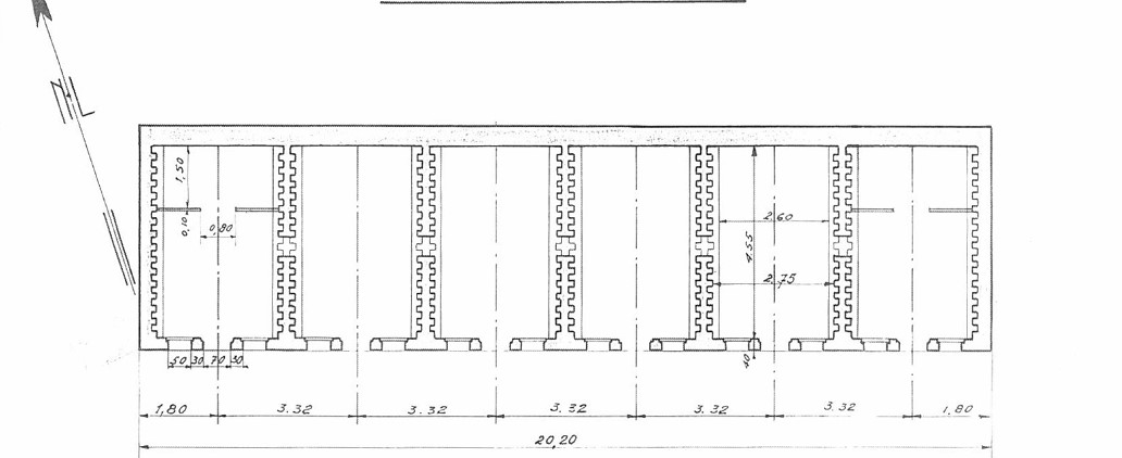 Le bâtiment principal (1) de l'ensemble comporte six alvéoles en tôle métro derrière une façade maçonnée.