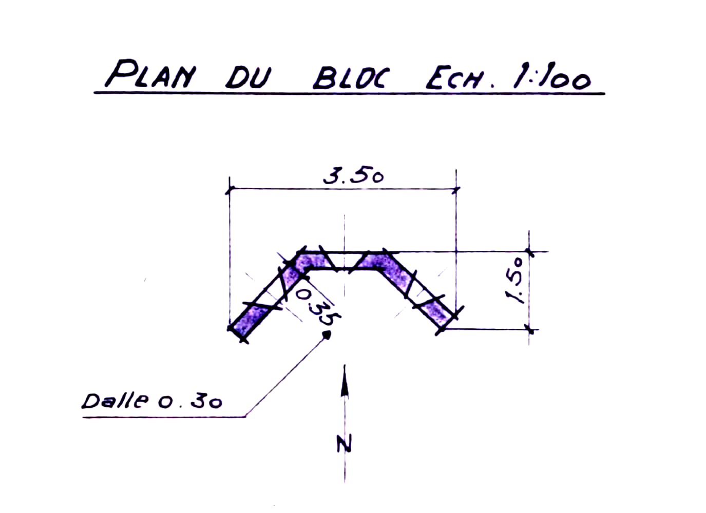 Bouclier pour arme d'infanterie à trois créneaux. Les murs ont 0,35 m d'épaisseur, la dalle a 0,30 m.