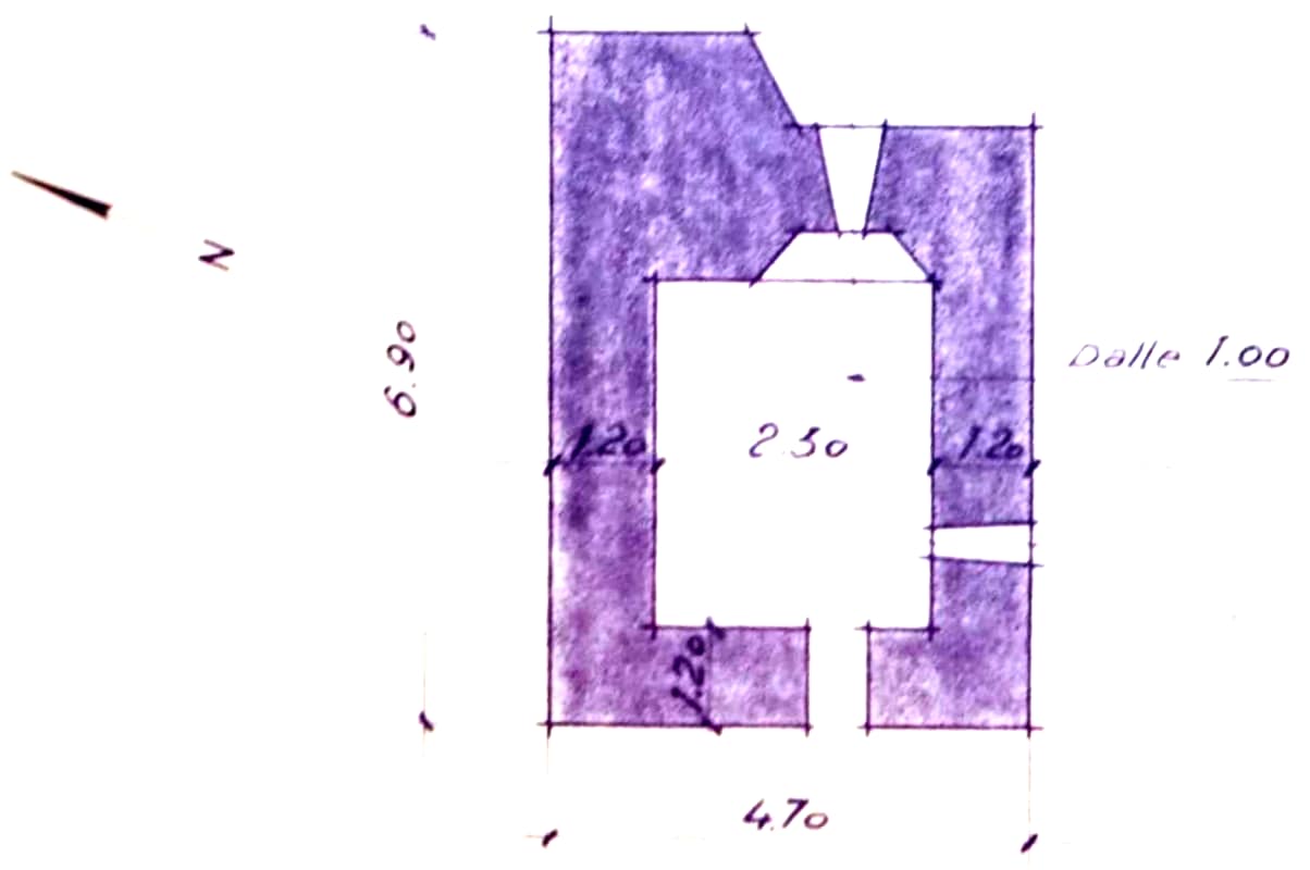 La tranchée d'accès est encore bien visible.