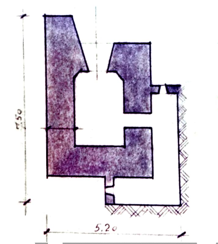 Il est précédé côté entrée d'une petite avancée terrassée avec deux petits murs, l'un frontal avec créneau d'observation, et l'autre latéral avec créneau de défense rapprochée.
