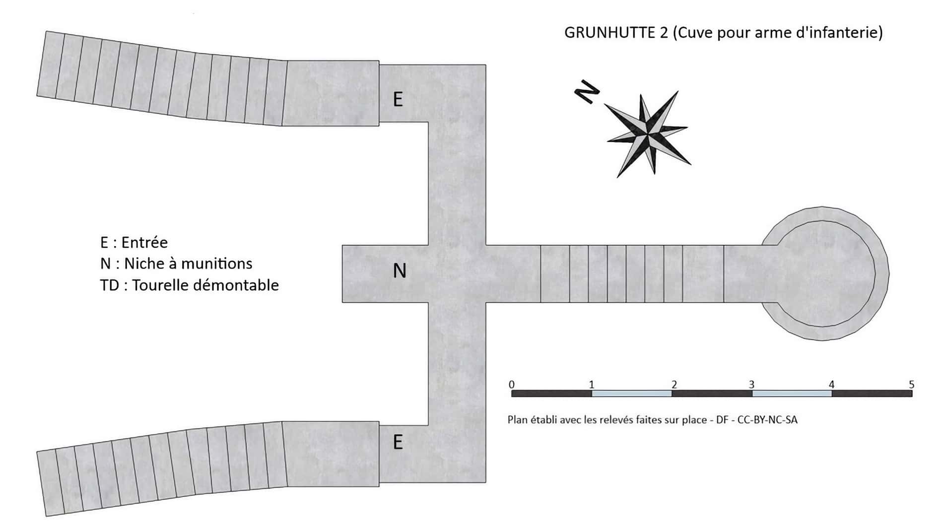 Le blockhaus est composé d'une coupole bétonnée type 7° région, d'une galerie d'accès avec deux entrées arrières.