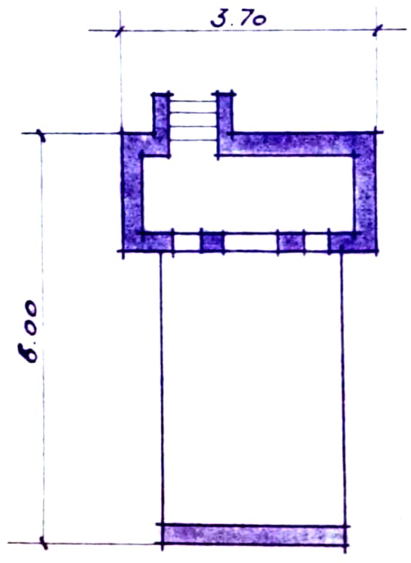 Abri-PC à une alvéole sous tôle métro couverte de terre, avec entrée maçonnée.