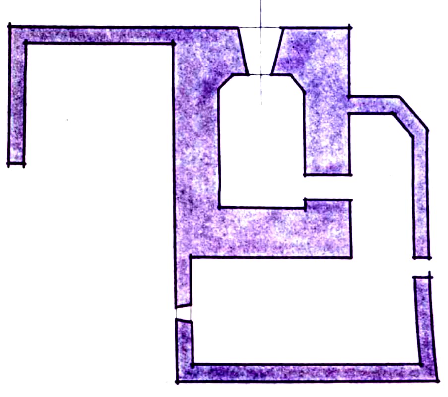 Blockhaus pour mitrailleuse Hotchkiss de modèle MOM-STG type 1, sans orillon et implanté en action frontale. Le bloc dispose d'une avancée protégée devant l'entrée et d'une extension à ciel ouvert côté opposé à l'entrée, pouvant servir d'observatoire.