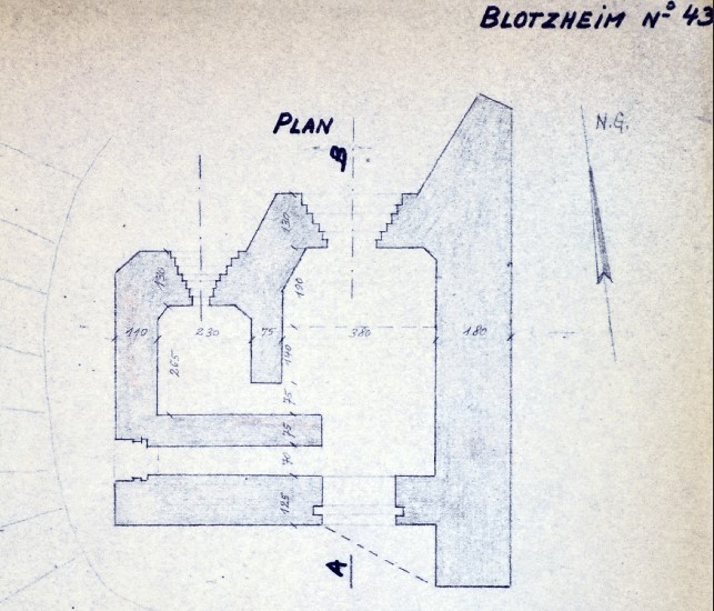 Grand blockhaus mixte - canon AC de 25mm et mitrailleuse - à créneaux coaxiaux, orientés nord. Le plan de ce bloc est identique à celui de MATTWEG 2, le classant dans les blocs de type STG-FCR en protection n°1