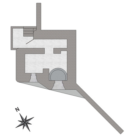 Pour entrer dans le blockhaus, il faut descendre trois marches.