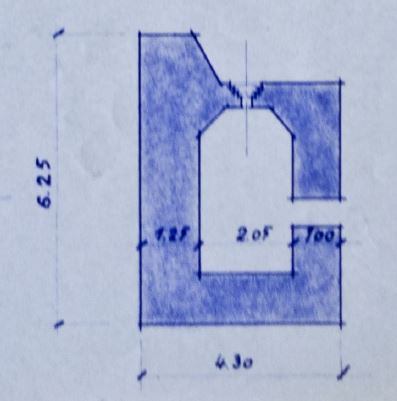 Blockhaus standard MOM-STG type 1bis pour mitrailleuse Hotchkiss flanquant à droite. Le bloc a reçu une trémie Condé. Piédroits de 1,25m et dalle de 1,00m.