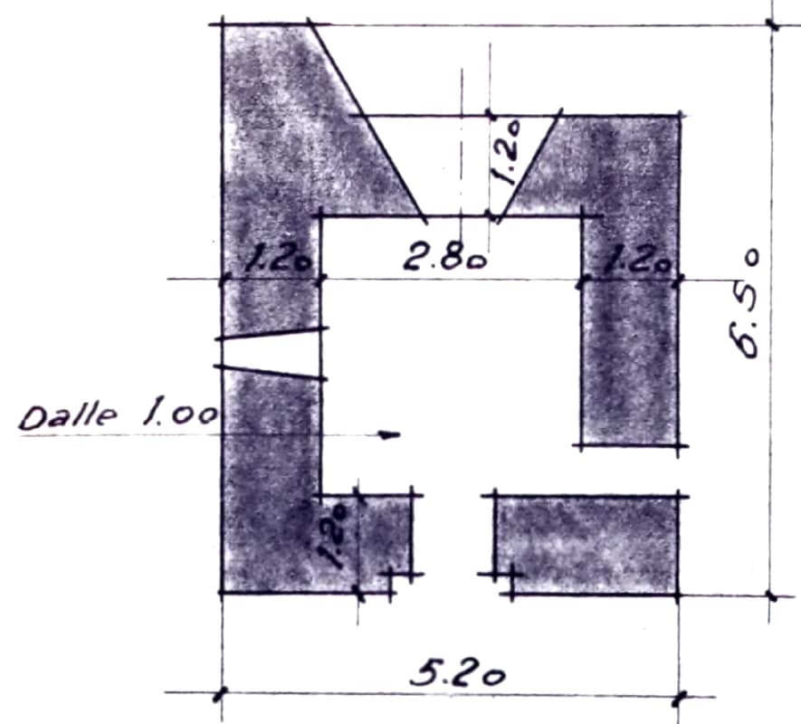 Blockhaus MOM pour canon antichar de 47mm Mle 1937, type 2bis de l'Album n°1 de fortification de campagne de la STG, flanquant à droite mais orienté frontalement pour prendre la route en enfilade
