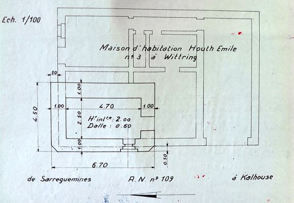 Blockhaus pour mitrailleuse, prenant le passage du barrage en enfilade. Le bloc était intégré au départ dans un bâti privé.