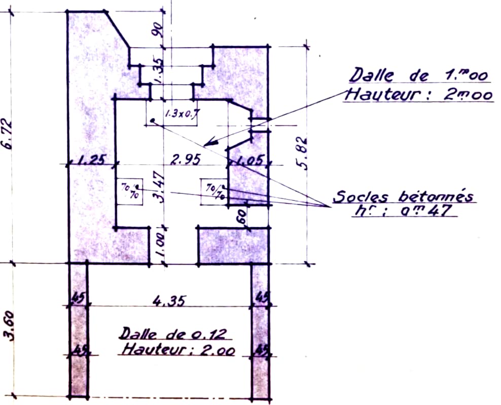 Piedroits de 1,25m et dalle de 1,00m d'épaisseur.