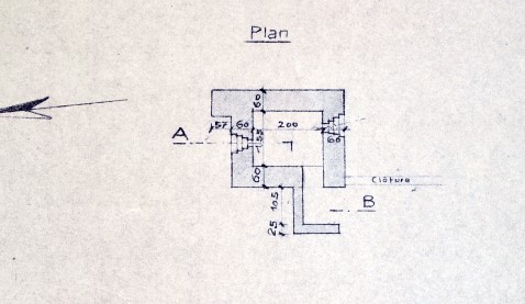 On aperçoit les traces de ce qui reste des murs du blockhaus, au ras du sol.