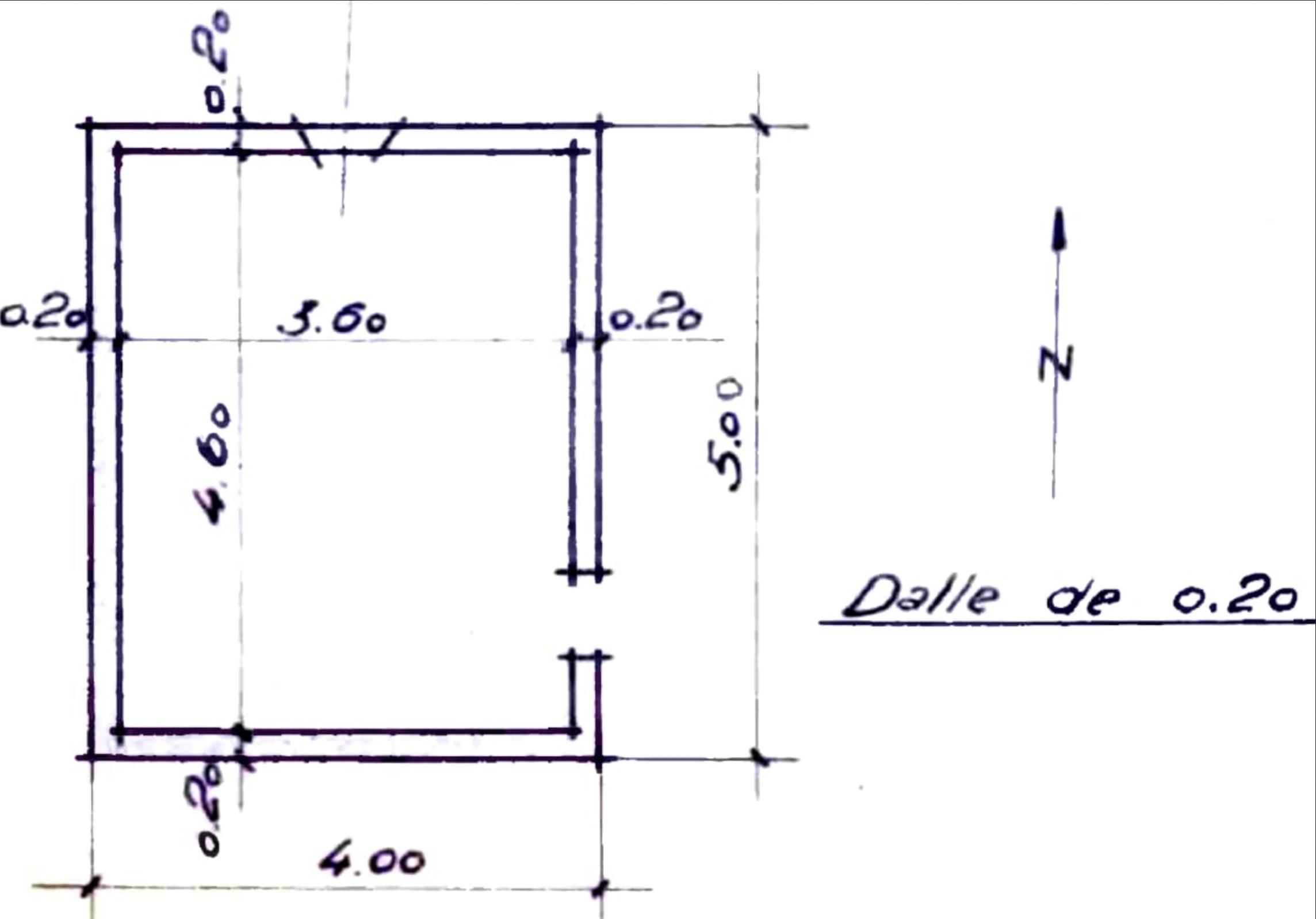 Abri bétonné de 5mx4m avec petit créneau d'observation frontal. Epaisseur des piédroits et dalle : 0,20m.