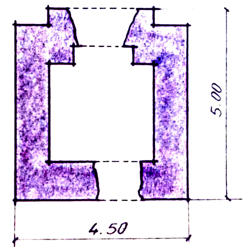 Blockhaus léger pour canon antichar, orienté frontalement vers le Nord. La construction était en cours (radier réalisé et amorce de piédroits)