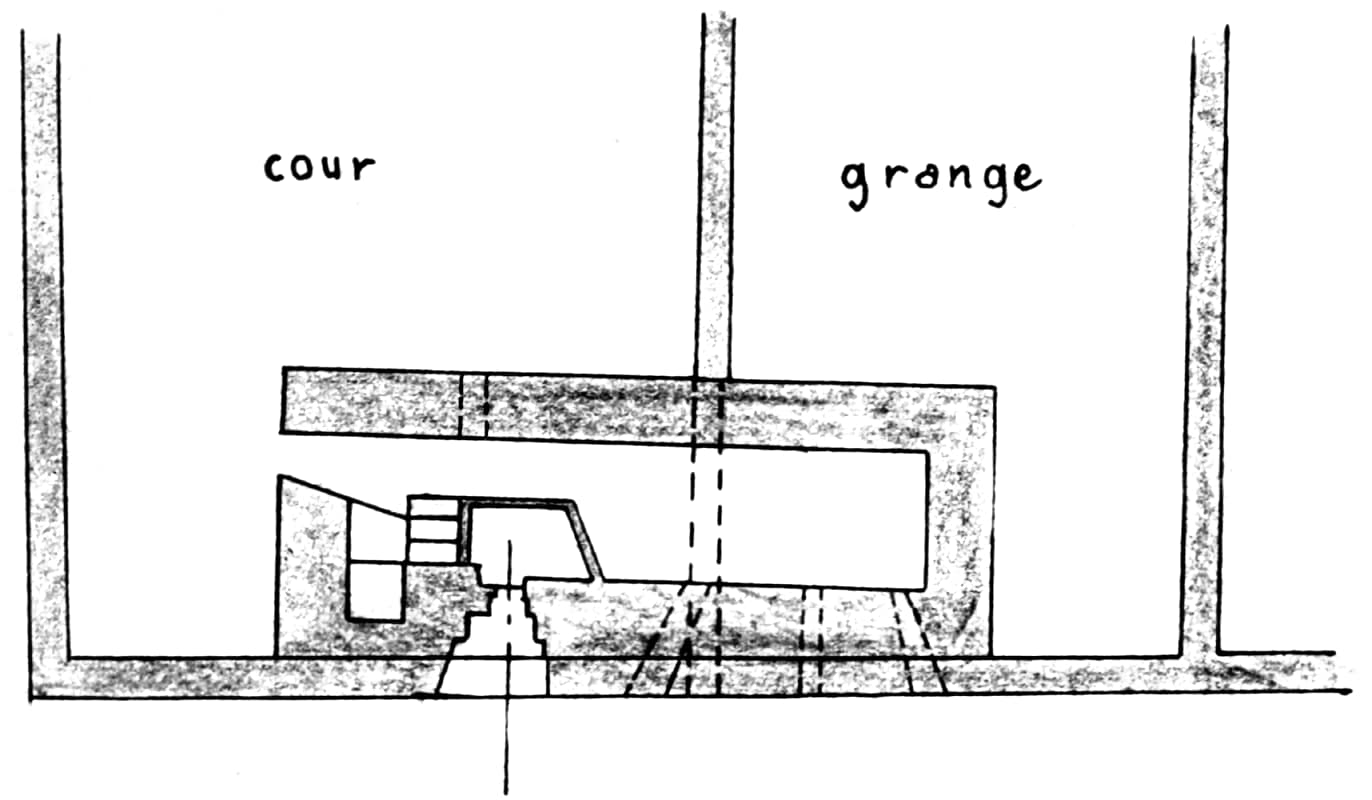 Blockhaus très particulier, composé d'un poste de tir pour mitrailleuse et FM construit l'intérieur de la grange de ferme, complété côté cour par un local avec guérite observatoire légère.