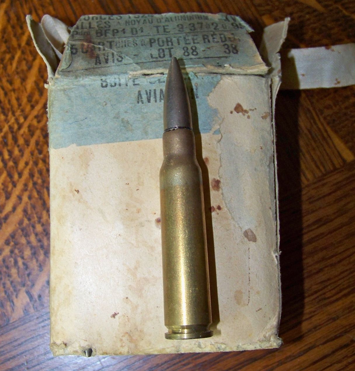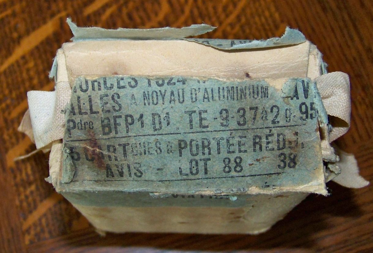 Bonjour, il s'agit d'une munition destinée à l'aviation pour les tirs d'entrainement à avec les mitrailleuses d'ailes ou de bord. Le lot est daté de 1938. Ces munitions sont soumises à la législation en vigueur et leur propriétaire doit être détenteur d'une licence de tir ou d'un permis de chasse valides et posséder une arme de ce calibre.