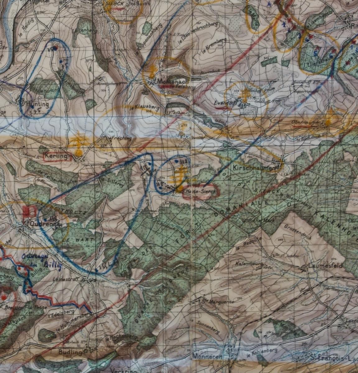 Pour ce qui est de la limite entre sous-secteurs d'Elzange et Hombourg-Budange, d'après mes éléments elle passerait entre le village de Kirschnaument et le bloc de Pivelsacker. Cela reste flou, car en particulier le GUF dit que cette limite met les villages de Kirschnaumen et Launstroff au Nord et Remeling au sud. Sachant que cette limite passe entre Cb1 et la casemate Nord de Hummersberg, cela laisse Pivelsacker juste à la limite... L'idéal serait de savoir par quelle unité ce bloc était tenu le 10 Mai, et c'est ce qu'apporte une carte tirée du Denkschrift (voir fil sur le brisant du Klosterbusch). Si vous avez d'autres éléments confirmant ou infirmant, ils sont bien sur bienvenus.