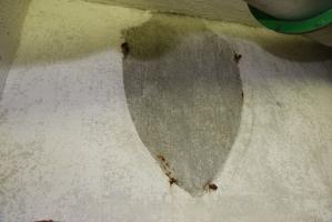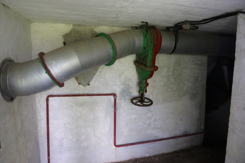 Dans le bloc d'entrée B1, derrière un gros tuyau de ventil on remarque la trace d'un grand insigne qui était accroché. Quelqu'un en sait-il plus sur ce qu'il représentait ? Merci