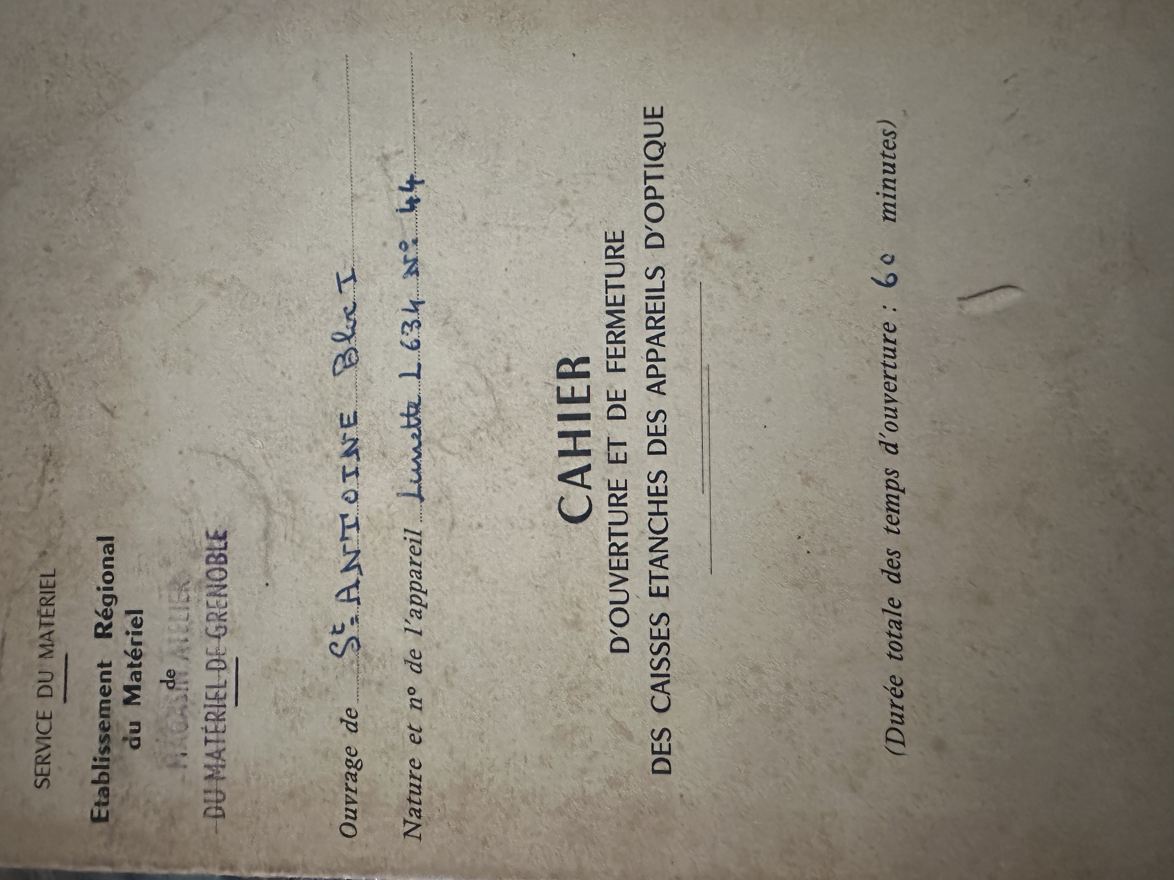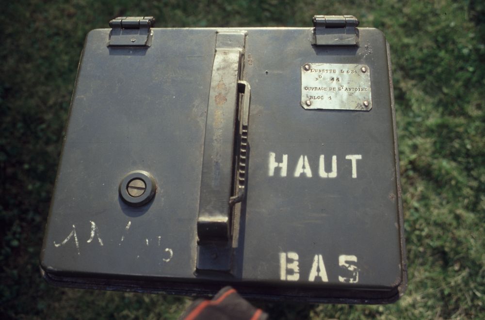 Bonjour , voici la lunette que nous possédons à l'association ( don de la part de l'armée en 1973 )bien que l'ouvrage n'est bien entendu jamais eu l'utilisation d'une telle pièce .Il s'agit de la lunette n°44 de la pièce N°23 . Voici donc des photos d'une pièce qui est certes daté d'après guerre ( 1954) mais qui devait équiper un canon de 75 M 31 du petit ouvrage des Alpes de Saint-Antoine .Vous remarquerez la boîte de transport et le fait que les lentilles de visions et l'optique sont en très bon état .