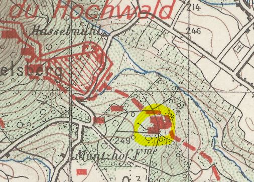 Elle ne montre rien… alors que la carte IGN montre quelque chose. Il faut cependant se méfier des cartes d'espionnage allemandes, qui sont parfois incomplètes ou erronées. La preuve : le bloc Oberwald existe mais n'est pas sur la carte allemande. Cela dépend aussi de la date à laquelle la carte allemande a été faite.