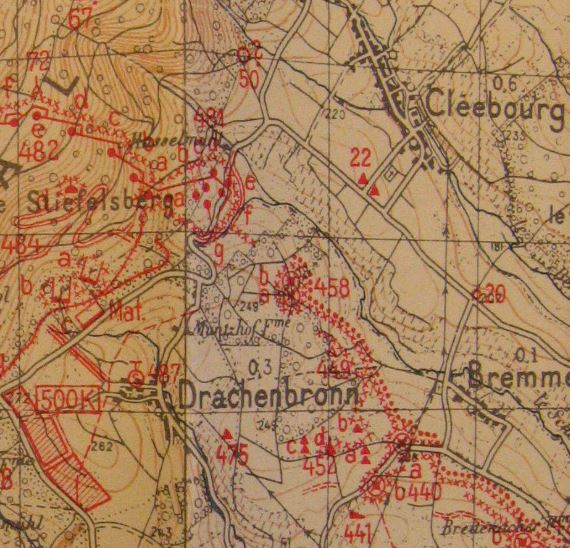Pour le 3e point autour des casemates de Drachenbronn : la présence d'une petit casernement de garde en arrière des casemates est somme toute logique. Il faudra le rajouter avec sa position exacte.