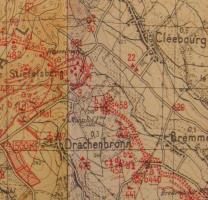 L'auteur de cette fiche s'est basé sur cartomaginot, qui je pense est parti de cette carte renseignée de juin-juillet 1939 (voir ci-dessous). Cette carte mentionne 3 blocs à Drachenbronn : les deux casemates CORF bien connues et donc une troisième construction indéterminée.