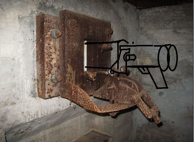 Bonjour, j'ai souvent vu ce système de fixation pour mitrailleuse et je pense qu'il est incomplet. Je n'ai pas trouvé de document montrant l'arme fixée sur son support.