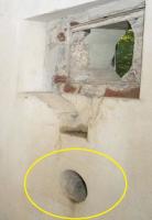 Cette seconde version permettait d'évacuer les fumées vers l'extérieur. elle était munie d'une porte coté intérieur, porte dont son voit nettement les paumelles dans l'encadrement. Coté extérieur, soit une porte soit un système permettant le passage des fumées.