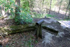 j'ai une autre question : sur le radier du premier étage, on peut voir un dispositif, qui devait servir au système de fermeture de la barrière, au vu des rares photos d'époque, je pense qu'il devait servir entre autre au pivotement du volet blindé lorsque la barrière était fermée, cela dit il me semble quand même un peu compliqué comme système, il devait certainement comporter un contre poids à l’intérieur du blockhaus.