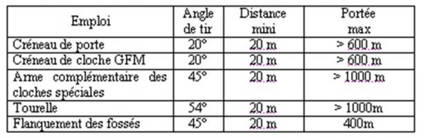 - un projectile pour les faibles portées (inférieures à 130 m)