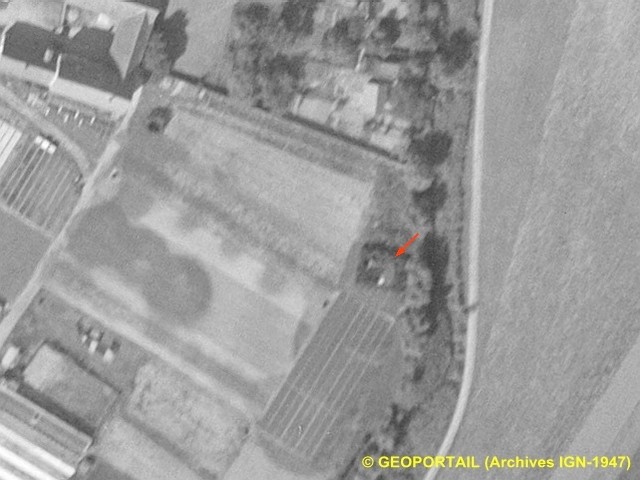 L'emplacement proposé par J-L et Sylvie sur la photo IGN est le bon. Mes constructions civiles se situent un peu plus au nord, dans la partie boisée (jardin). L'une d'elle est d'ailleurs bien visible sur la photo IGN 1947 (toit orienté nord-sud).