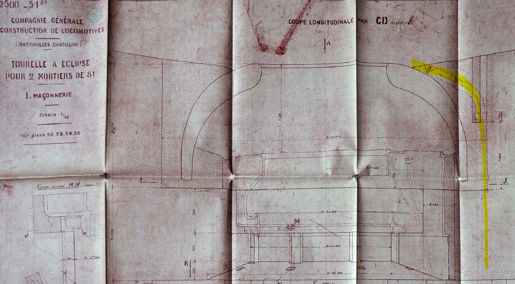 - et enfin la coupe de génie civil de construction Batignolles-Chatillon de la tourelle de 81mm avec le même design d'évacuation.