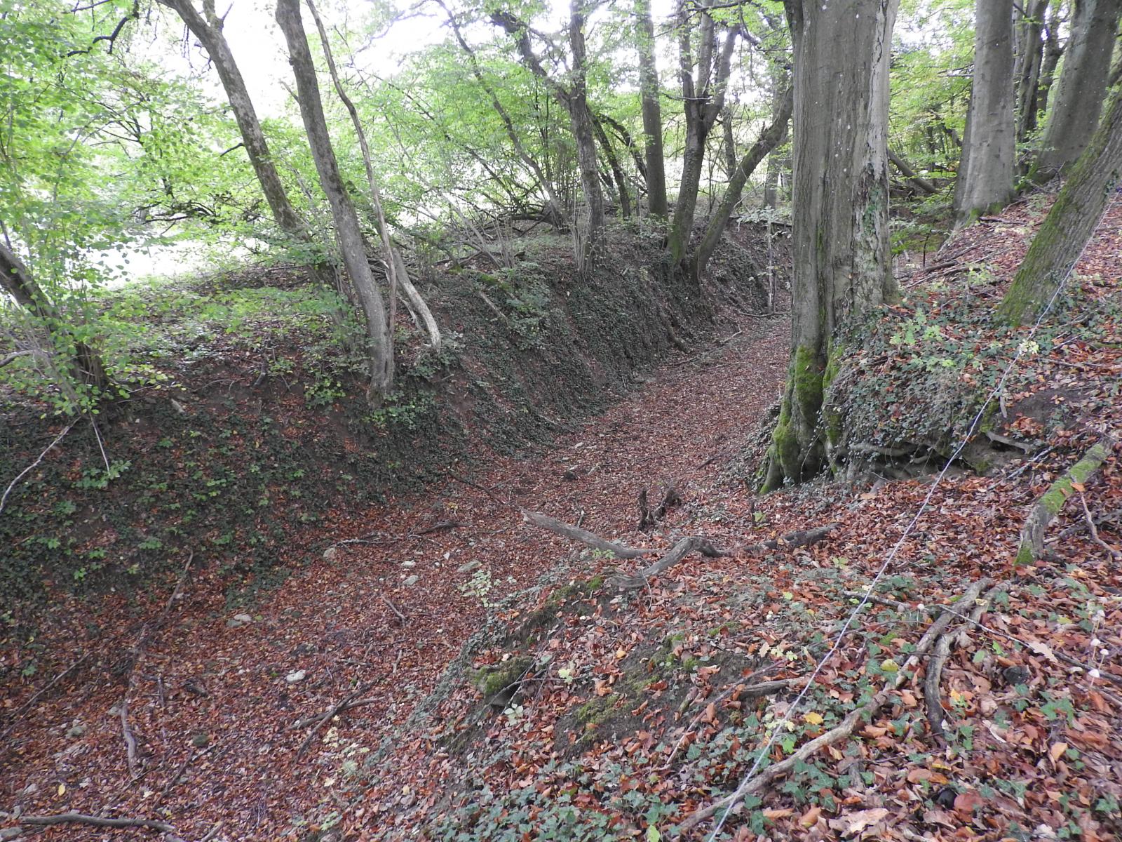 Les Allemands avaient prolongé le fossé dans le bois sur plusieurs dizaines de mètres afin d’éviter son contournement, ce qui a parfaitement fonctionné. Après-guerre, ces quelques mètres n’ont pas été comblés.