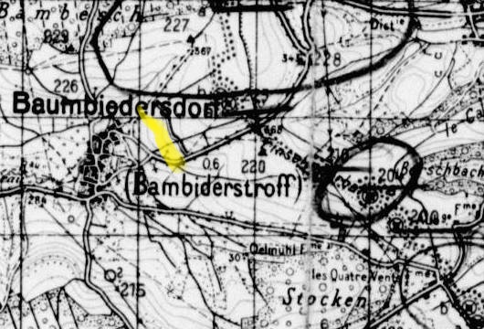 Je ne saurais dire officiellement s'il s'agit ou non de l'amorce du fossé antichar au nord-est de Bambiderstroff sur la carte allemande de renseignements de 1939.