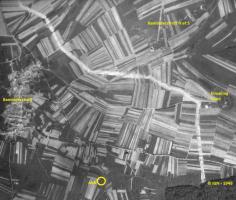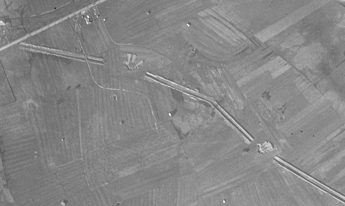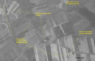 En admettant que le fossé français de 1939 ait bien existé à l'emplacement indiqué par les renseignements allemands (en omettant une imprécision de leur part), et que les Américains ne l'aient pas relevé en 1944 en raison de sa proximité avec celui de 1944, comment ce fait-il qu'aucune trace de remblaiement/nivellement n'apparaisse sur la photographie aérienne de 1948 ? (le remblaiement du fossé antichar dans son ensemble n'a toujours pas débuté en octobre 1945).