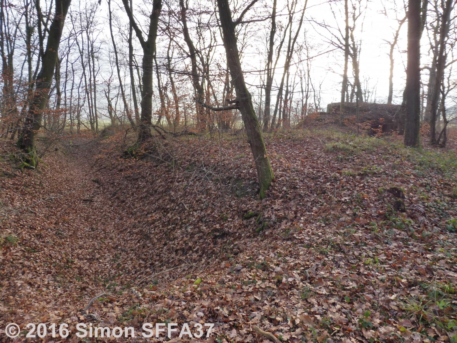 Une partie de ce fossé subsiste également dans la lisière nord du bois du Stocken ; les derniers vestiges – ou presque – de cet obstacle antichar.