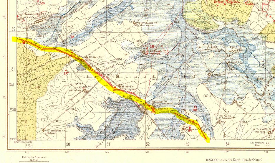 Merci de ces informations intéressantes. Comme l'amorce de ce fossé au nord-est de Bambiderstroff apparait sur les cartes de renseignement allemandes de 1939, peut-on imaginer que ceux-ci aient en fait repris à leur compte les travaux initiés par les français ?
