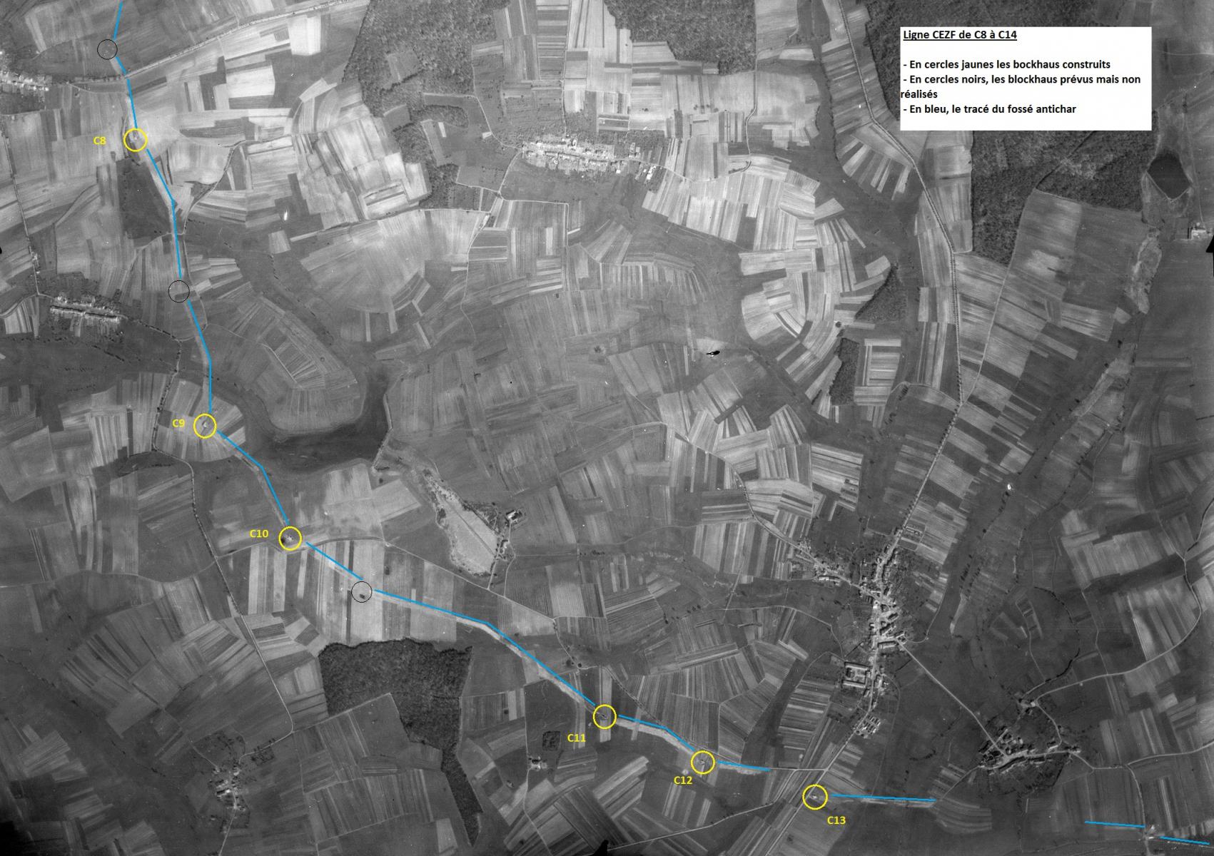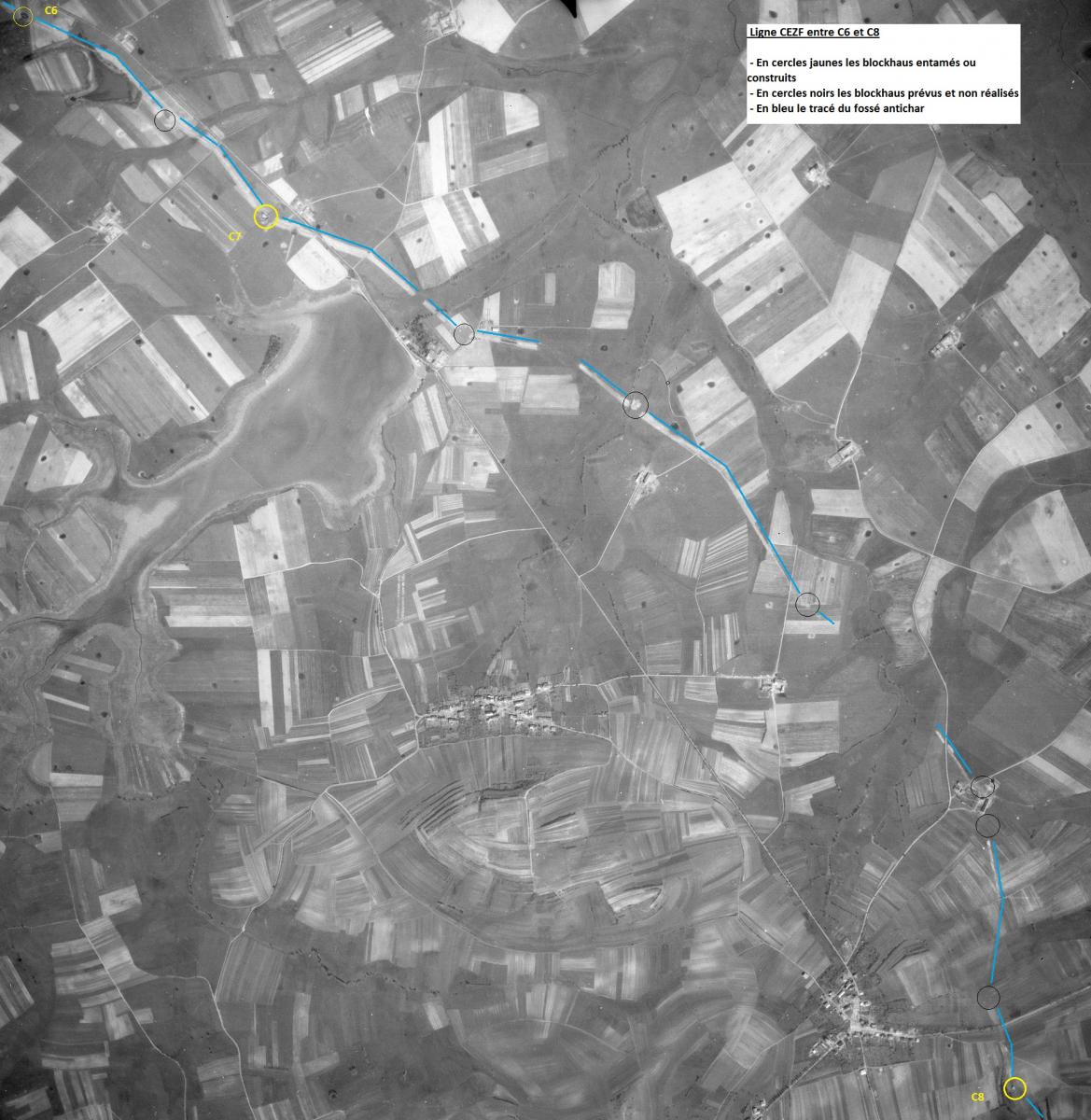 Merci pour ces explications. Effectivement les interruptions dans le fossé CEZF au niveau des fouilles ou des futurs emplacements des blocs sont bien visibles sur les photographies aériennes IGN de 1948.