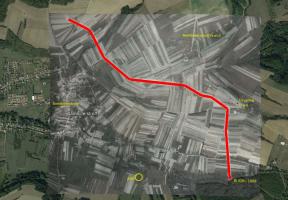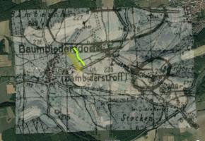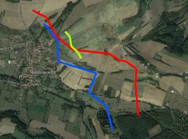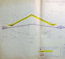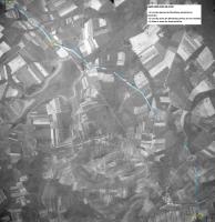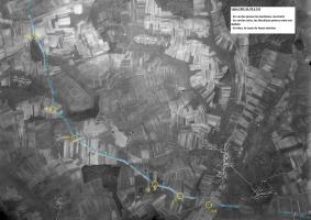 La deuxième est la superposition de la carte allemande au 1;50.000e renseignée de 11/1939. Le tracé de l'embryon de fossé est relevé en jaune à partir de cette carte.