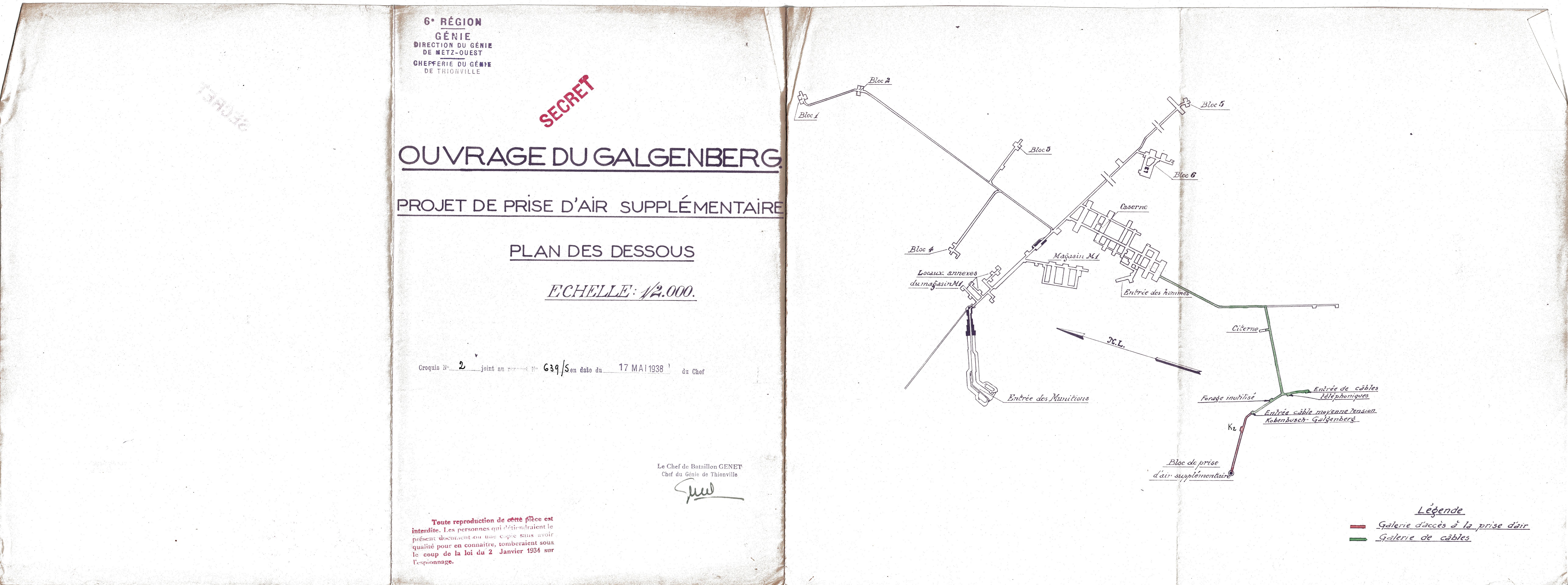 Voici ce que j’ai retrouvé dans les archives du Galgenberg sur le sujet. Il y a deux croquis joints à un rapport 639/S du Chef de Bataillon Genet, mais je n’ai malheureusement pas ce rapport qui serait intéressant. Je fouillerai de nouveau à l’occasion post-confinement pour vérifier s’il n’a pas échappé à mon attention.