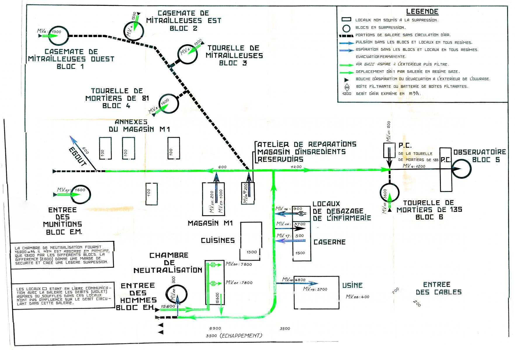 Donc, sans doute plus d'inconvénients (mise en oeuvre délicate du ventilo, mauvaise défense rapprochée) que d'avantages (mise en surpression des galeries et de l'usine en régime "air gazé", ajout d'air pur pour le fonctionnement des groupes).