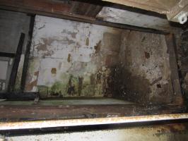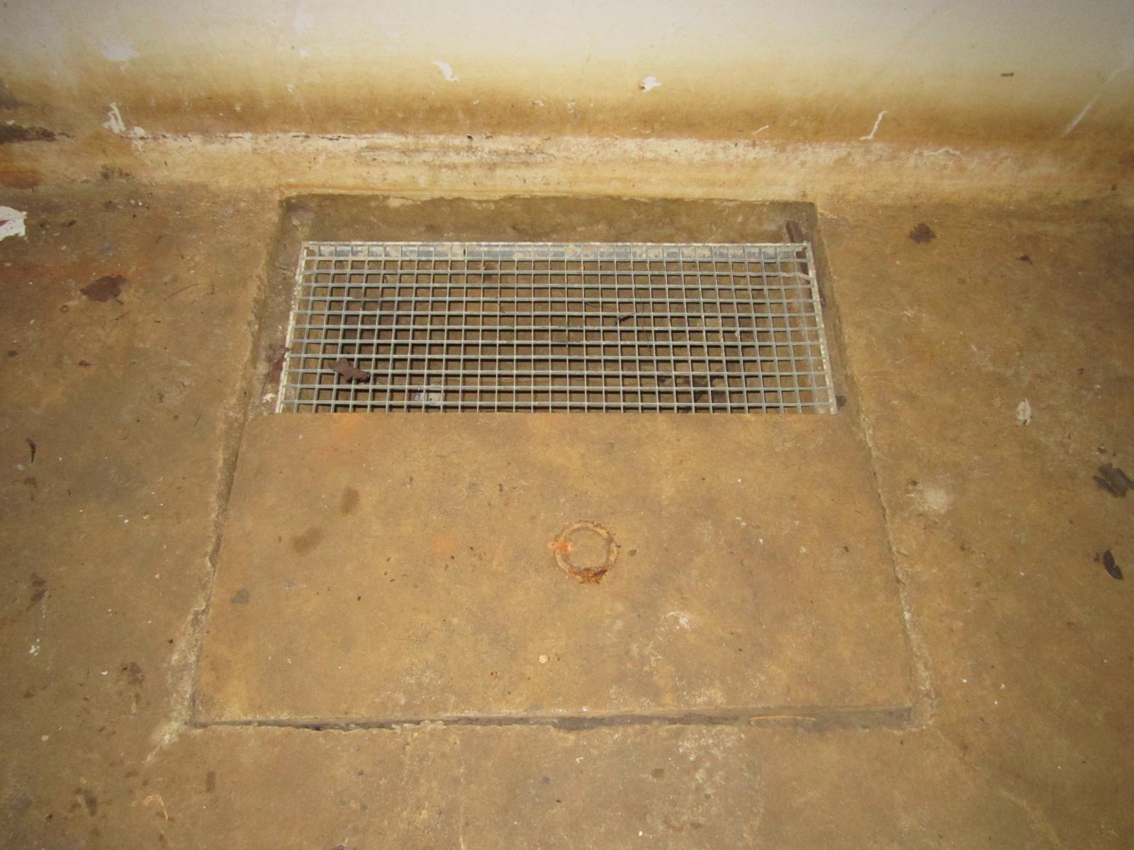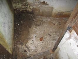 - Il semblerait qu'un retranchement à été construit contre le bloc coté droit (du coté de l'entrée). On peut voir un parement en pierres, couvert en partie par un enduit de ciment et une dalle bétonnée au sol avec un petit regard pour l'écoulement des eaux de pluies.