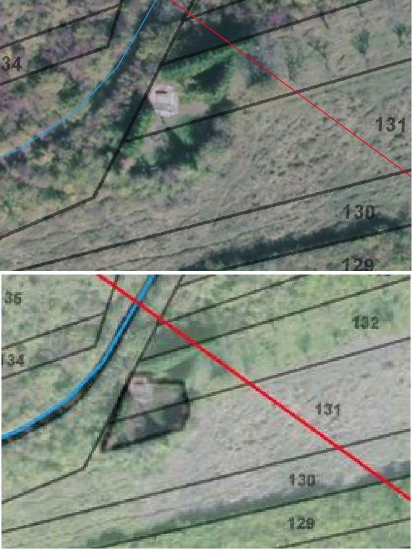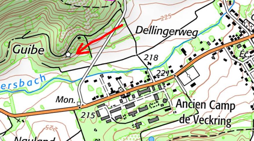 On est pas à l'abri d'une élucubration IGN, car quand on dézoome la carte, la "construction" prend pile le tracé d'une clôture de pourtour de petite parcelle… Vu du ciel cela pourrait passer pour un blockhaus simple flanquant à gauche, sauf que la gorge serait vers l'Allemagne.