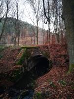 D'ailleurs, on peut apercevoir à côté un pont délaissé pour le passage de l'ancien chemin forestier, lorsqu'il ne pouvait pas passer par ce pont d'origine ferroviaire.