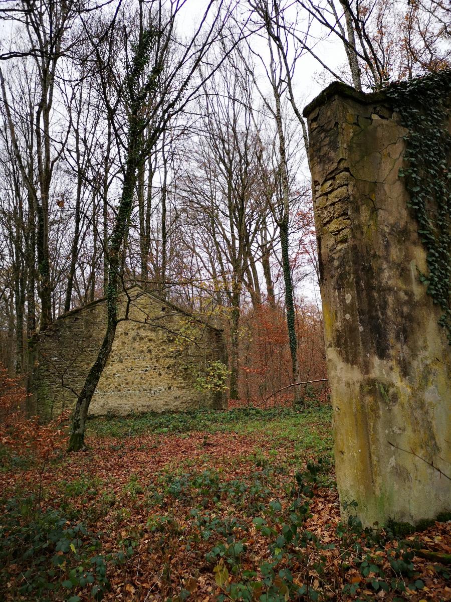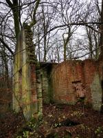 - A l'entrée, des ruines avec certains murs en briques, sans doute une maison de gardien / logement pour la troupe