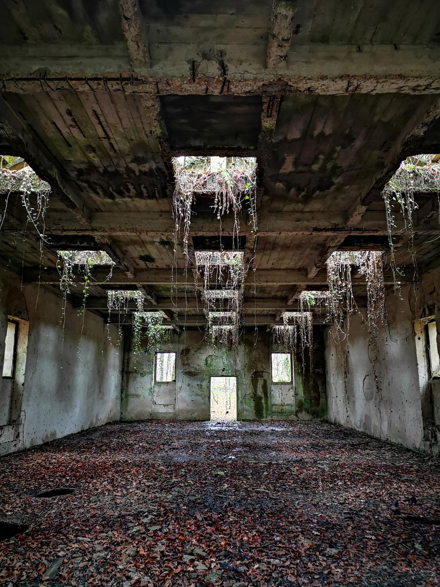 - Dans le dépôt, environ 8 (ou plus) bâtiments de taille importantes, toujours debouts, sans toiture , possédant un étage, avec de nombreuses ouvertures carrées au niveau du plafond (voir photos). Un des ces bâtiments est réutilisé par un particulier.