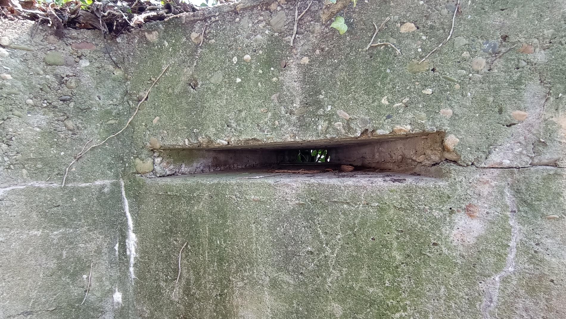 Le renfoncement sous le créneau mitrailleuse est destiné à recevoir les deux pieds avant de son affut de campagne, le troisième étant vers l'arrière.