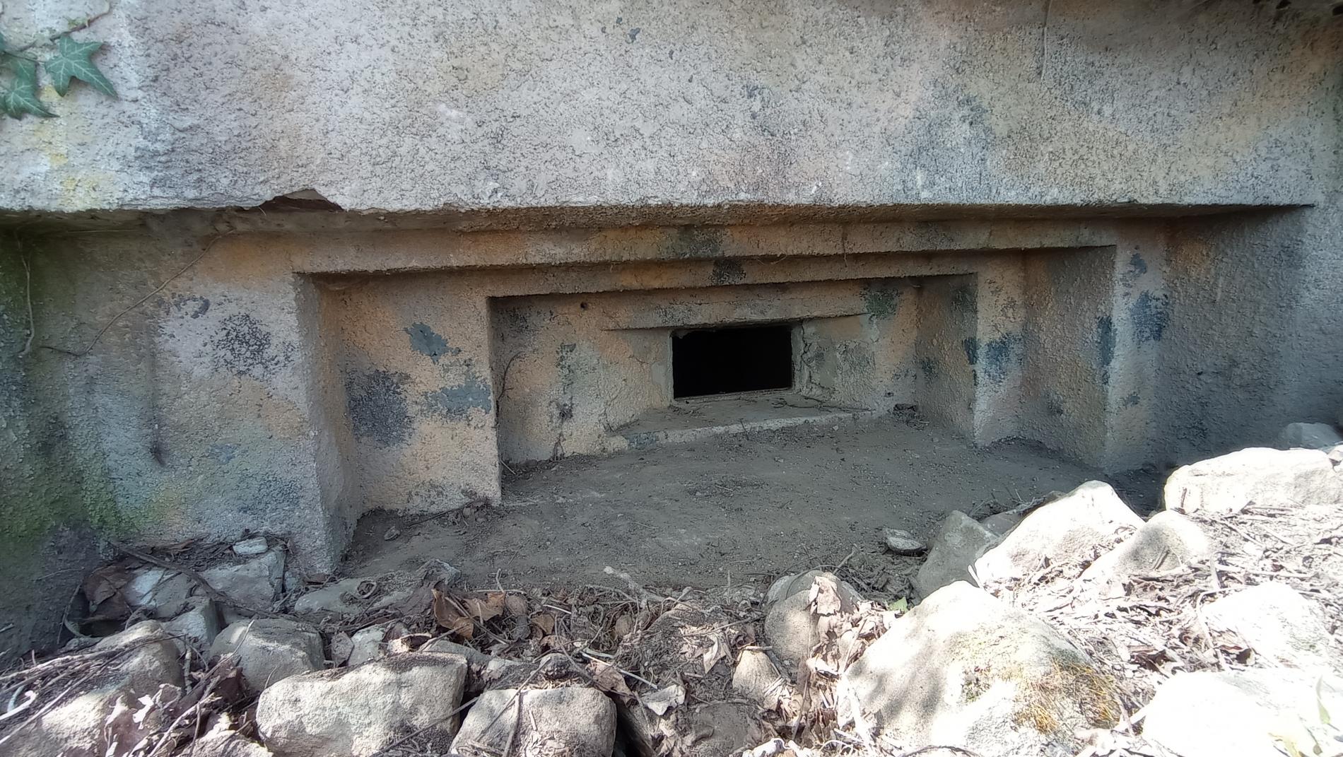 Créneau inversé : ce n'est absolument pas une invention Maginot, puisque dés le moyen-age, les meurtrières des châteaux forts étaient exactement conçues ainsi. L'objectif était en effet de minimiser l'ouverture côté extérieur face à des armes peu précises. Cette disposition est bien sur acceptable et judicieuse pour l'observation ou pour une arme sans affut (ou a affut à pivot fictif à la bouche de l'arme) qu'on peut faire pivoter dans la partie la plus étroite. Les allemands avaient ce genre de disposition dans certains de leurs propres blockhaus Regelbauten. L'affaiblissement du mur arrive en effet à cause de la forme triangulaire du blockhaus, et cela quelque soit son sens - on est bien d'accord. Mais l'affaiblissement là est plus important car le coup tiré par l'ennemi touche en premier la zone la plus faible autour de l'embrasure alors que dans un créneau "normal", la munition a plus de chance de perdre une bonne partie de son énergie par les ricochets ou en se perdant dans les redans avant de toucher la zone faible. C'est en ce sens que cette disposition telle que vue là n'est pas la plus courante.